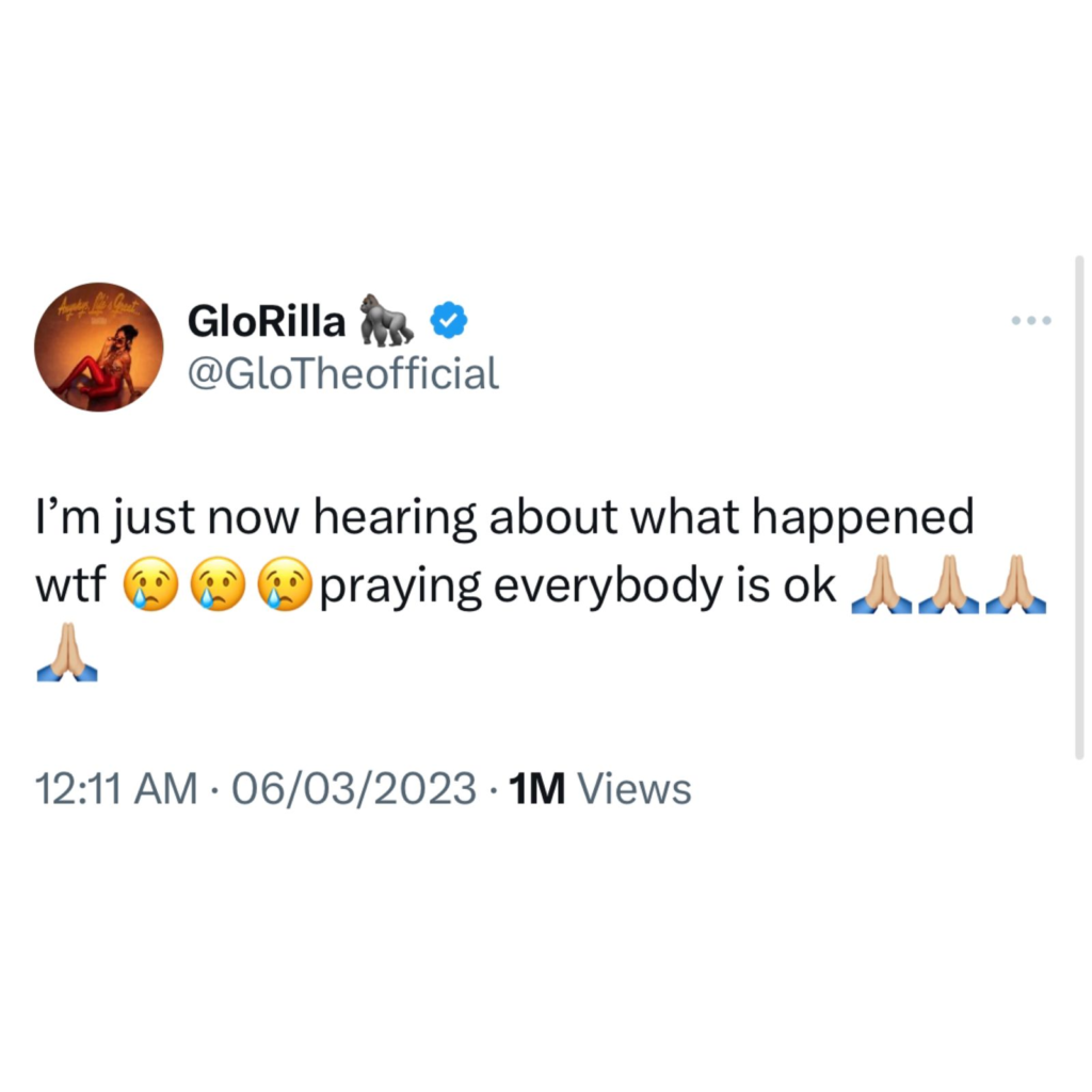 In a remorseful post on Twitter, the FNF rapper explained that she was unaware of the tragedy while it was happening- “I’m just now hearing about what happened wtf 😢😢😢” she tweeted adding, “Praying everybody is ok,”.