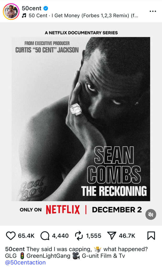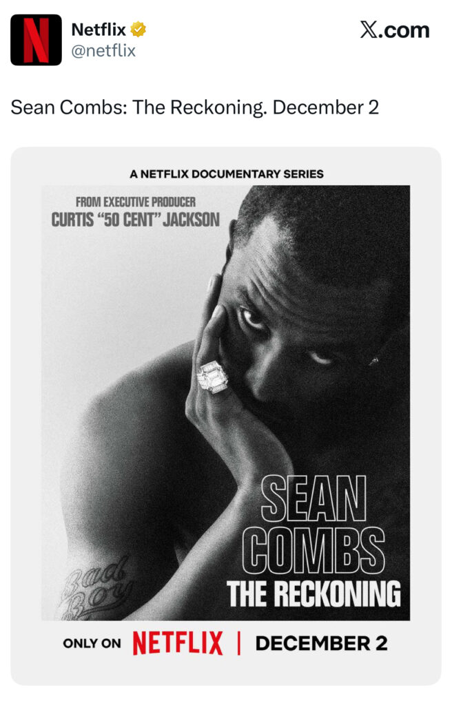 The highly anticipated 50 Cent-produced Netflix “Diddy-documentary” titled “Sean Combs: The Reckonning” has officially been given a release date set for December 2.