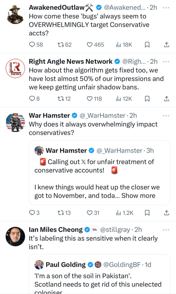 Several users had also noted that flagged accounts coincidentally shared conservative socio-political views.