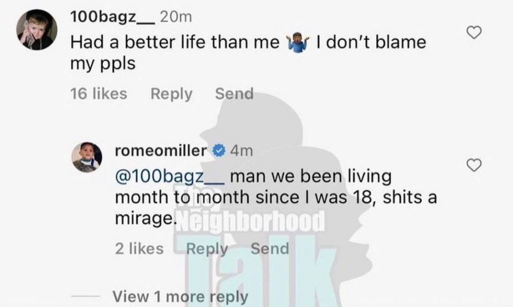 A point the senior Miller touched on in his video saying, ” I come from nothing ya’ll and could go back and I wouldn’t be mad at God I won’t get mad be disrespectful to my parents or none that stuff” he said before chiding his son’s behavior.