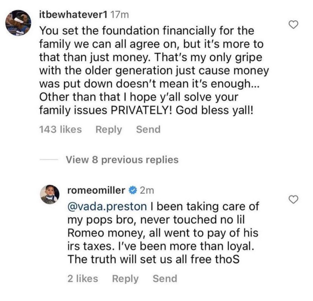 The public spat between former rapper Master P and his actor son Romeo Miller continues its spillover into social media after he addresses claims of money grabbing by Romeo during his career as a young artiste.