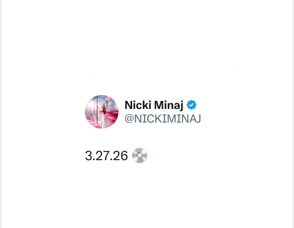 Minaj clued fans into the major drop via her Twitter, where she tweeted the 3/27/26 and CD emoji, which of course sent her fans into a frenzy in anticipation.