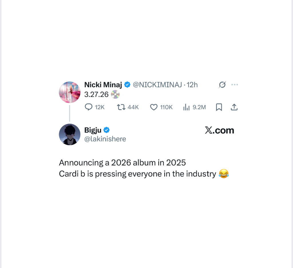 While there was much fanfare around the announcement from her fanbase popularly referred to as the “Barbs”, the almost inescapable play on the alleged rivalry between her and fellow female rapper Cardi B was among the noticeable discussion on the topic.