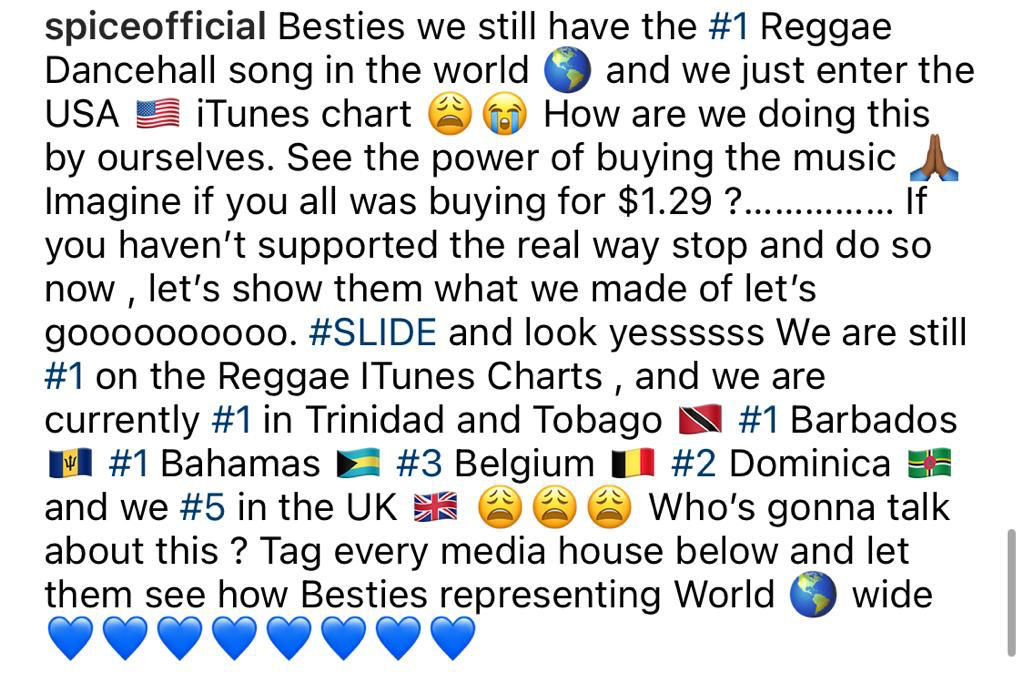 The “Suh mi like it” hitmaker also posted several territories where the single has charted.